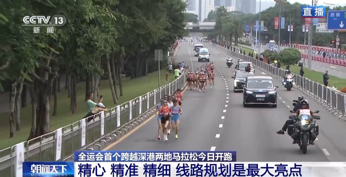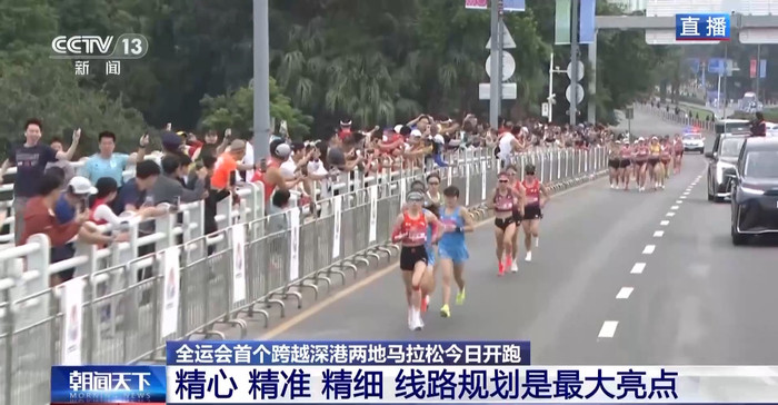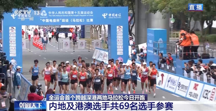 总台央视记者韩冰:今天上午,本届全运会的马拉松比赛正式拉开大幕,我所在的深圳湾体育中心既是比赛的起点,也是终点。正在进行的是女子马拉松项目,参赛运动员共有33位。
