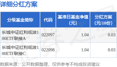 本站消息,9月23日发布《长城中证红利低波动100交易型开放式指数证券投资基金联接基金分红公告》。本次分红为2025年度的第5次分红。公告显示,本次分红的收益分配基准日为9月9日一点金,详细分红方案如下: